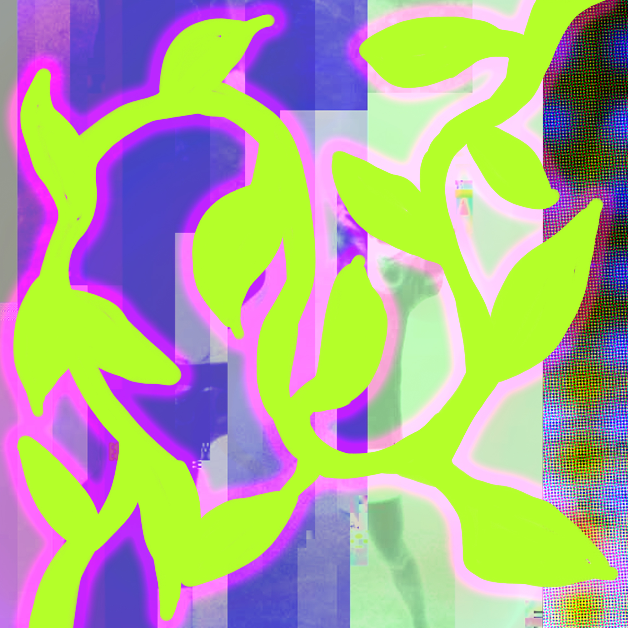 Blake Peterson and Zoe Phillips, 2019. Illustration and digital collage on aluminium; 18 x 18 inches